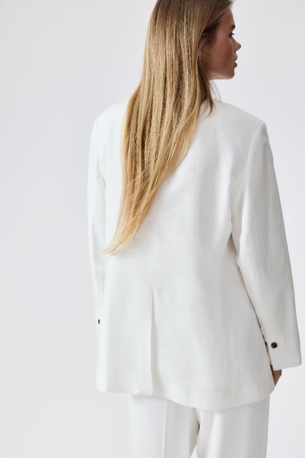 -Cierre de un botón carey en el medio y abertura con botón en los puños.