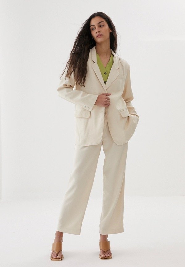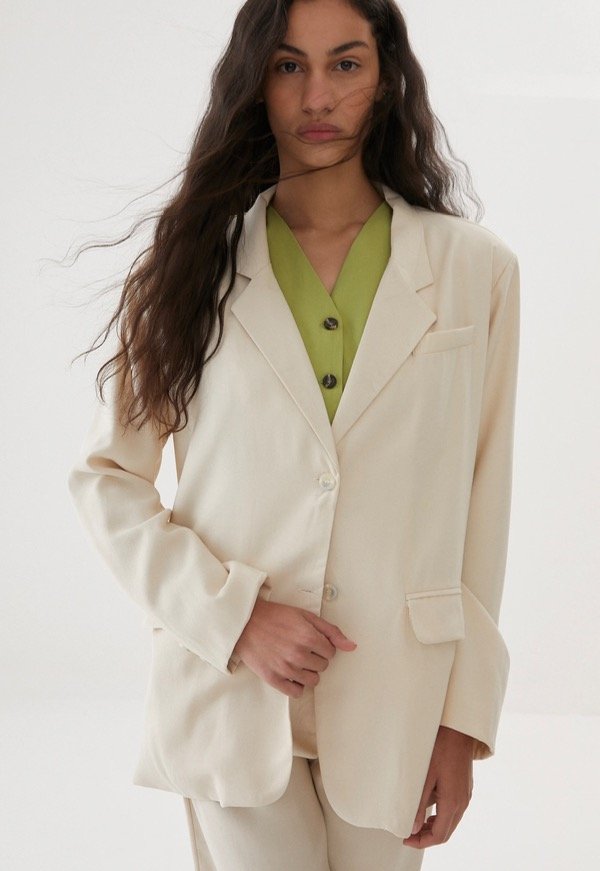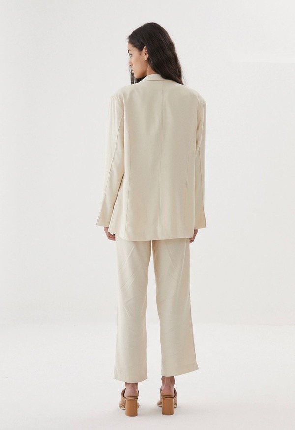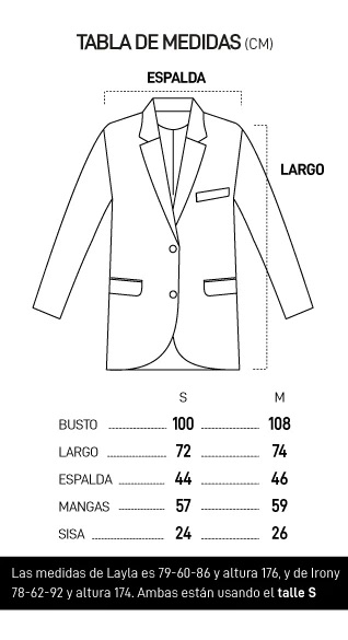 Blazer Oversized corte recto con forrería interna y hombreras.