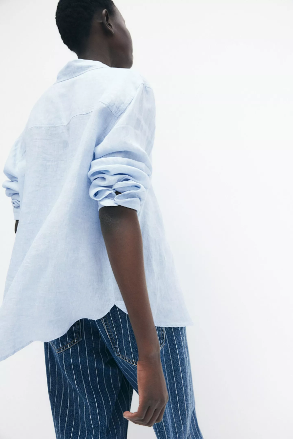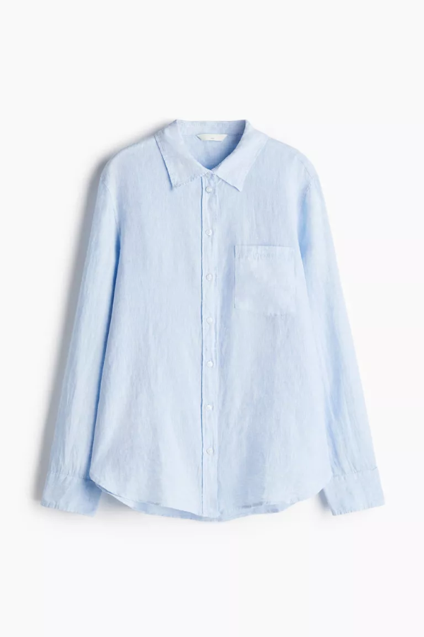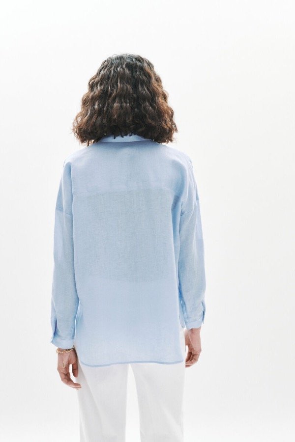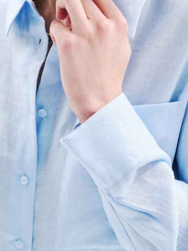 Camisa azul de lino con botones.