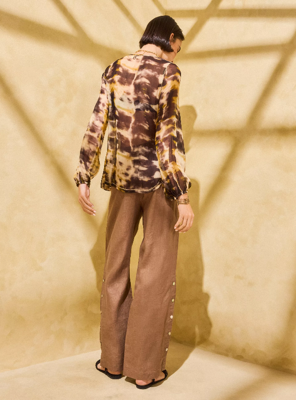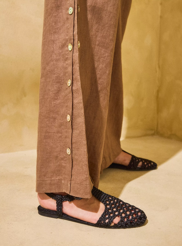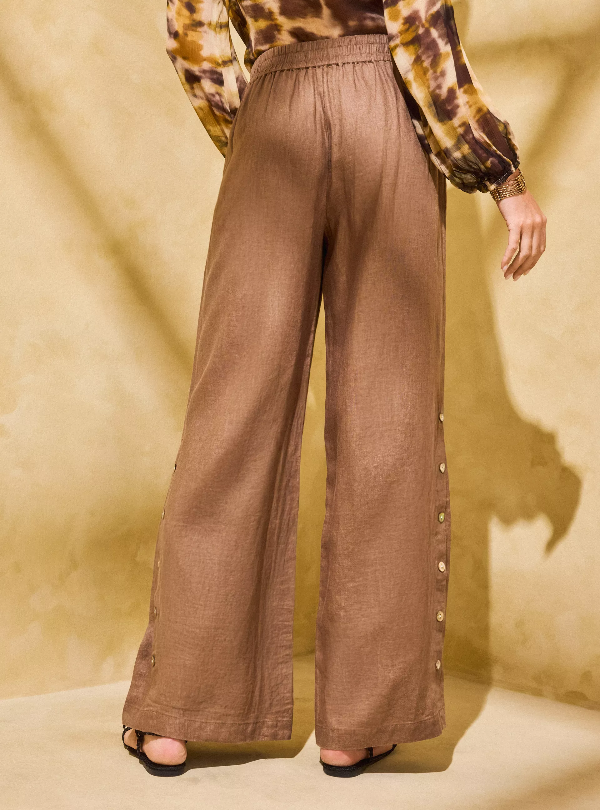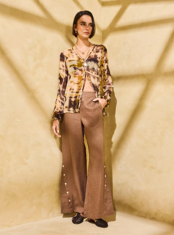 Pantalón palazzo/ oxford de corte amplio con botones en el costado.