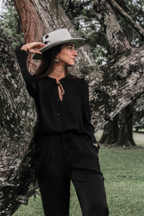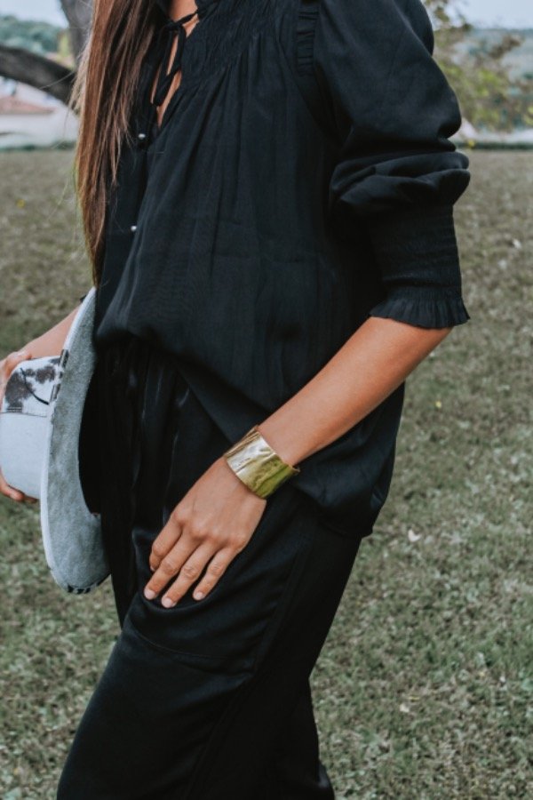 Camisa estilo romántico negra con puños elastizados.