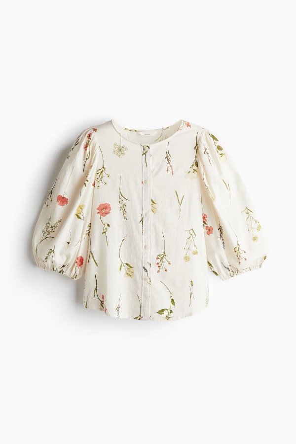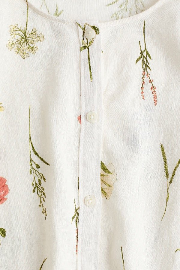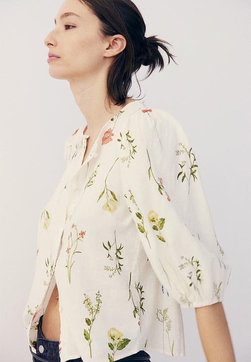 Camisita/Blusa color beige en tejido vaporoso con estampado de flores.