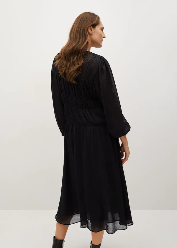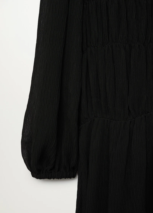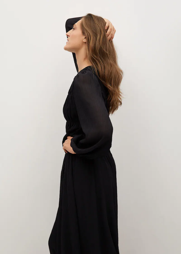 Vestido pliegues fluido manga larga.